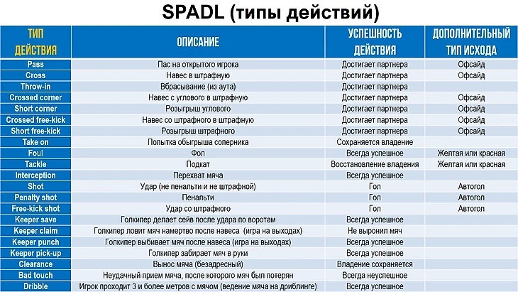 SPADL – язык для описания действий футболистов