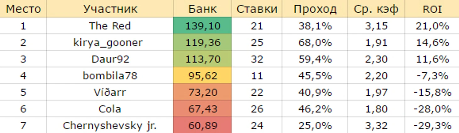 На второе место поднялся kirya_gooner — вы еще можете успеть на винстрик, 8 из 9 последних ставок зашли.
