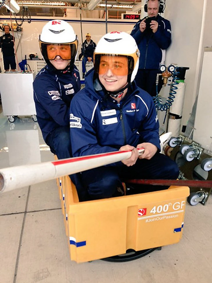 В итоге команды решили развлечь бедных зрителей. Появились команды из механиков, которых катали в тележках по пит-лейн.