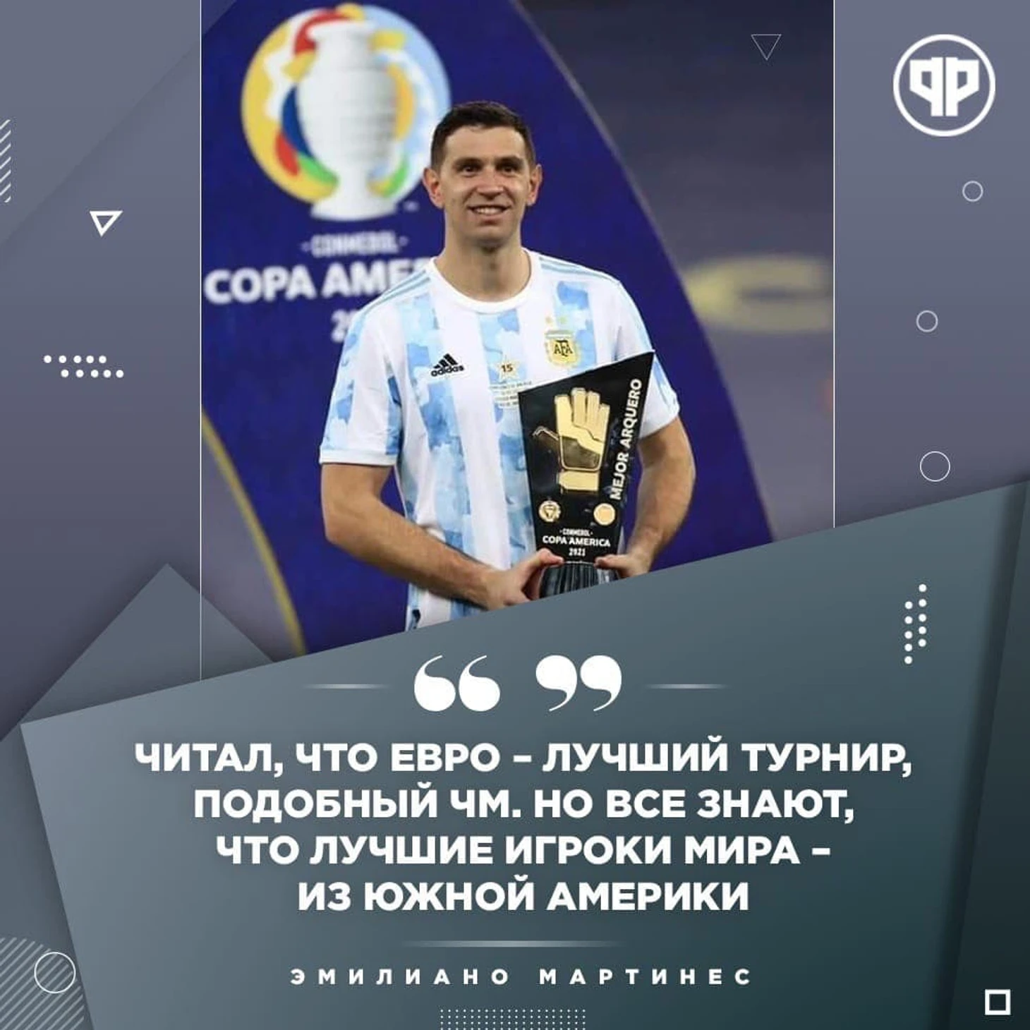 Эмилиано Мартинес: «У меня нет слов, чтобы объяснить этот момент! Я мечтал об этом с детства. Я перешел в «Арсенал», когда мне было 17 лет, в поисках лучшей жизни для своей семьи. Много лет борьбы и работы – я знал, что успех придет. Я прошел через многое, через людей, которые мне не доверяли. Но все это – уже история. Мы сделали это! От этой пандемии страдают все аргентинцы. Поздравляю всех аргентинцев – и бедных, и богатых. Наша победа - это им в награду. Они наконец-то улыбнулись. Мы порадовали каждого! Сейчас я аргентинец еще больше, чем когда-либо... Это величайший момент - "Мараканасо!" :) Мы хотели подарить этот трофей лучшему игроку мира. Я хотел этой победы для него сильнее, чем для себя. Я сказал жене, что это моя мечта, и она запретила нам встречаться, пока я на сборах с командой. Я все еще не пришёл в себя, я хочу насладиться этим со своей семьей, обнять свою дочь!".