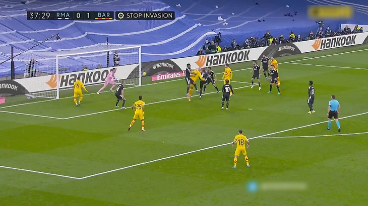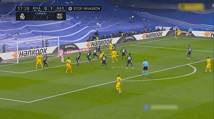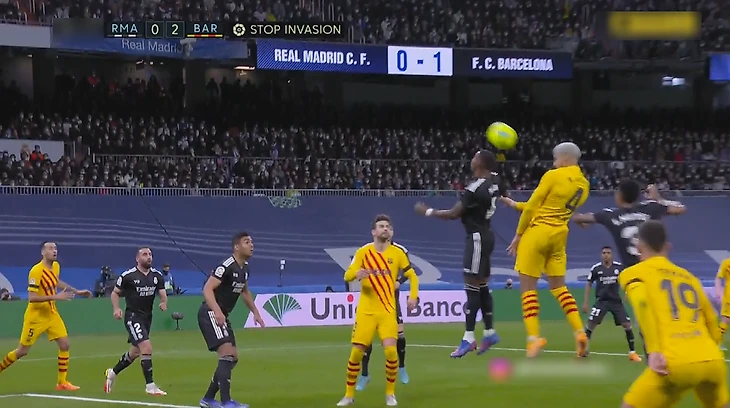 О втором забитом и рассказывать нечего, собственно. Подача Усмана Дембеле с углового, высокий прыжок Рональда Араухо - удар, гол!