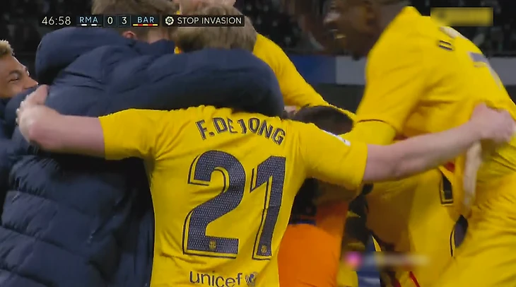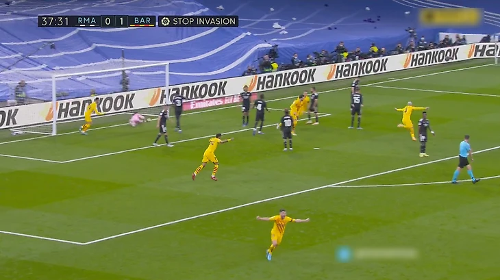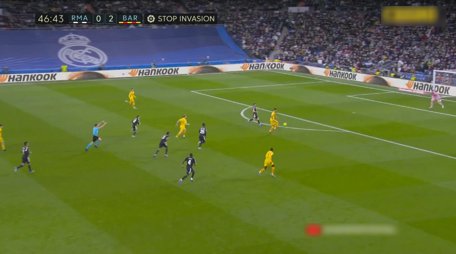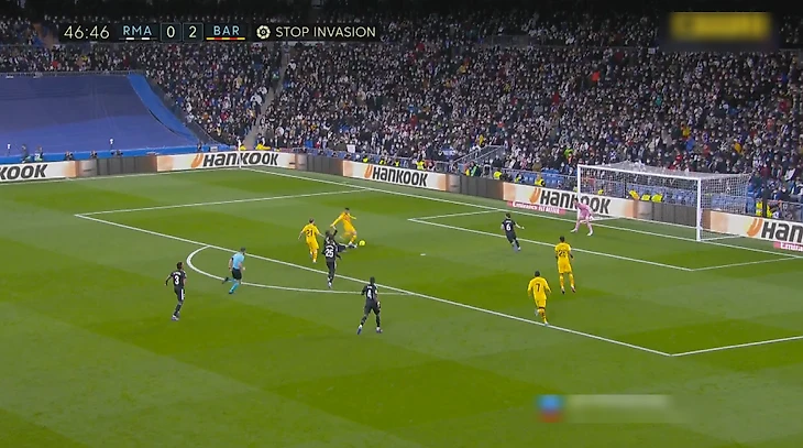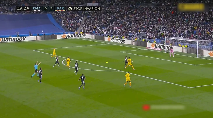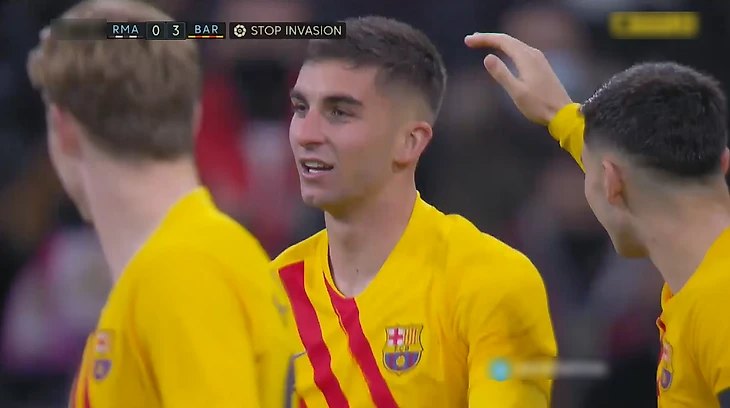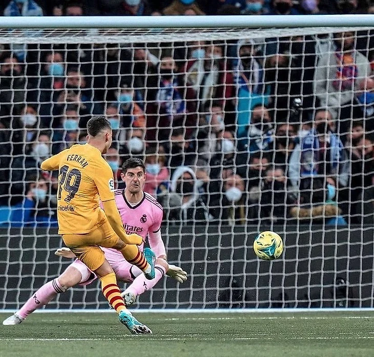 Барса раскатала защиту Мадрида как дворовых любителей и тот же Ферран плотным ударом послал мяч в сетку. Вынимай третий, Тибо, хотя твоей вины тут точно нет, имхо (я не люблю Куртуа за излишнюю болтливость и самовосхваления).