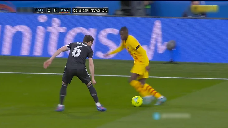 А чуть позже мячи начали уже и забиваться. Дембель молниеносно прошёл по правому флангу, на скорости ушёл от Начо (в этом он всегда был очень хорош) и расчётливо навесил по низкой траектории.