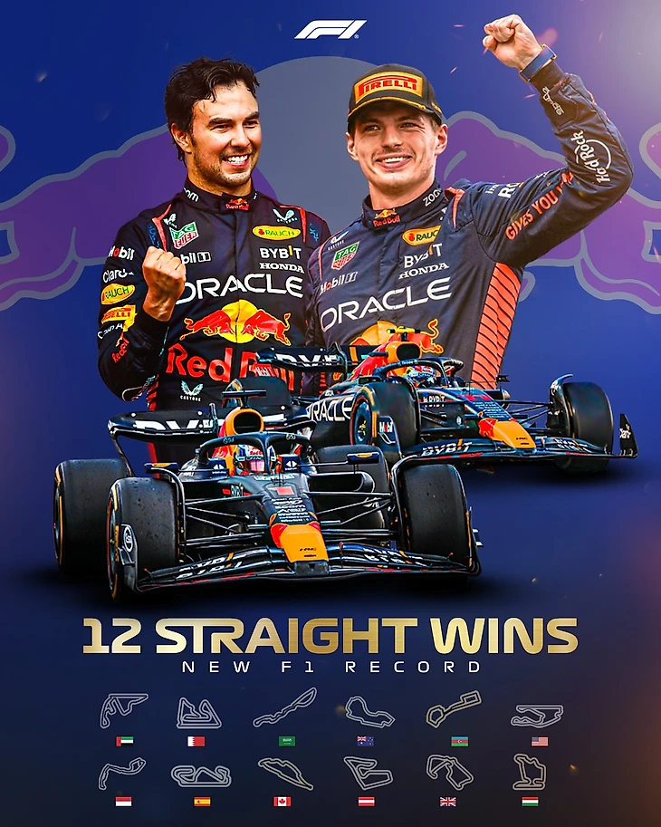 Но «быкам» до ожиданий фанатов нет никакого дела - продолжают серийно штамповать победы. Сегодня «Ред Булл» добыл 12-ю виктории подряд. Это новый рекорд Формулы-1, достижение «Макларен» образца 1988 года пало 35 лет спустя.
