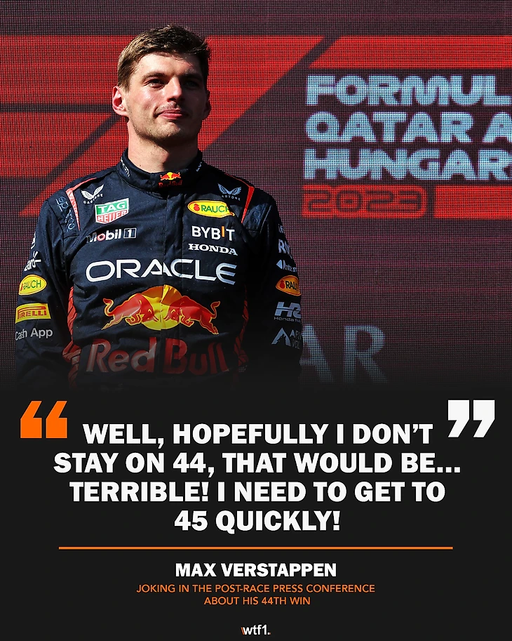 В следующие выходные нас ждёт спринтерский уикенд в Бельгии. Макс уже готов разрывать всех в Спа. Голландец не намерен останавливаться на 44 победах ни на секунду, срочно тащите 45-ю! 44 - гоночный номер Льюиса Хэмилтона.
