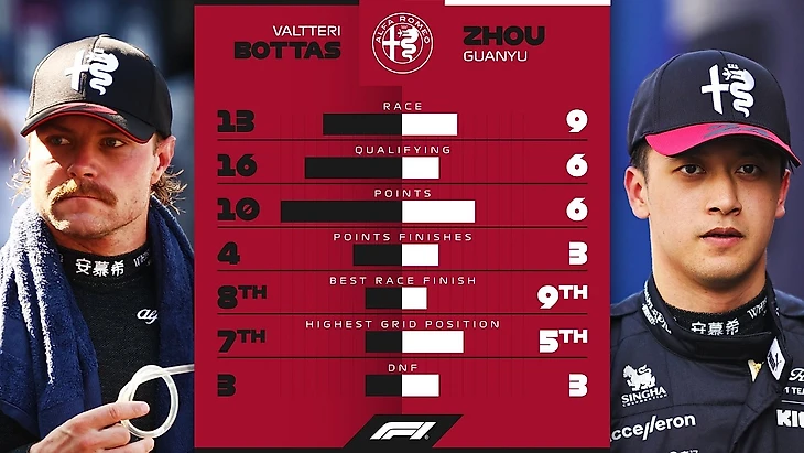 «Альфа Ромео» стала одним из главных разочарований сезона-2023 в Формуле-1 - Валттери Боттас и Гуанью Чжоу смогли набрать только 16 очков на двоих.