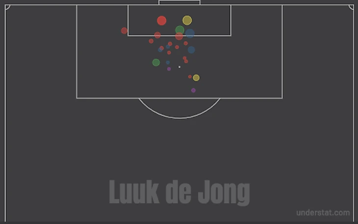 Люк нанёс 33 удара за первую половину сезона, из них забив лишь дважды. Партнёры играют на него, но де Йонг теряет всяческое самообладание перед воротами. У него худшая цифра по показателю G/NPxG в Ла Лиге, что означает просто безалаберность при распоряжении голевыми шансами. Вспомните игру на «Камп Ноу» – у него было четыре явных голевых момента, три из которых при счёте 0:0. Не говоря уже про худший средний показатель ожидаемых голевых передач в команде, исключая защитников (xA90), три передачи в штрафную и ни единого паса в разрез. То есть он не только не забивает, но и за полгода не привнёс особо атакующих позывов в игру «Севильи». Атакующая игра команды прямолинейна, предсказуема, сам де Йонг практически не участвует в любой комбинации в штрафной. Даже странно, как они до сих пор находятся на третьем месте в Примере.