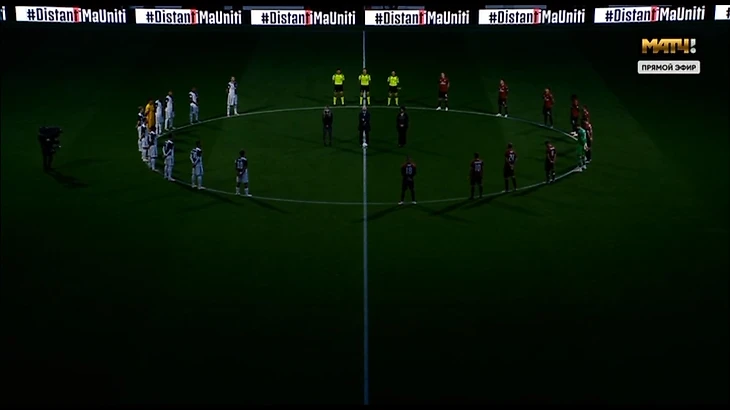 Потрясающая церемония минуты молчания перед игрой. Этот приглушенный свет в совокупности с тяжелым дыханием – сначала и правда думаешь, что это какой-то театральный эффект, и в это хотелось верить. А оказалось, что это оператор (ну или Черданцев) дышит в маску. Но вид красивый, да.