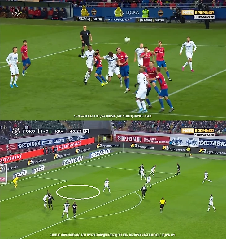 Касаемо репризы про неплохих игроков с 6 мячами… В этом есть своя логика, потому что тот же Кокорин, выстреливая 10 голами в чемпионате раз в 3-4 сезона, считался до тюрьмы у нас топ-форвардом. На расстоянии 6 мячей за чемпионат – статистика для игрока уровня середины таблицы РФПЛ. Но здесь-то у Берга шесть за полгода, а не за год. В этом моя промашка. Мы еще дойдем до всей статистики шведа за сезон, что только подтвердит мою неправоту.
