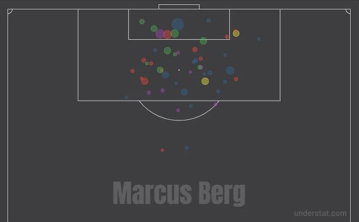 «Берг – это эталонный центрфорвард, которому нужно принести на блюдечке с зеленой каёмочкой». Ну нет, это не совсем так. Как раз он не стоит в центре штрафной, как Марио Гомес в лучшие времена «Баварии» в ожидании закатывания мяча в пустые ворота, с которым я сравнил в последнем абзаце статьи. Он уделяет много времени игре спиной к воротам, как раз подыгрывая полузащитникам в тех ситуациях, когда комбинации разыгрываются вне штрафной площади. Кроме того, швед очень неплохо выбирает позиции, частенько выбираясь на опережение и открываясь сам – посмотрите сами, он всегда себя предлагает в относительном радиусе свободы, смотря на партнера. Так что мои строчки про «удачно выбирать позицию получается только на стандартах» и «чаще остается за спинами соперников» тоже отлетают – это его стиль игры.