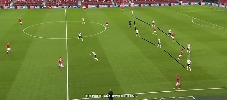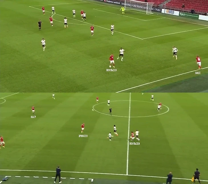 Посмотрев в перерыве запас датчан, я понял, что выходить-то некому, кроме форварда Корнелиуса. Дольберг не вывозил еще в первом тайме против троих центрдефов, Поульсен с Эриксеном могли лишь плести кружева у штрафной без возможности даже войти в нее, а левый фланг со Сковом и Брэйтуэйтом практически не использовался.