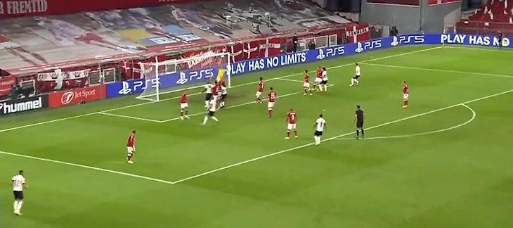 Через 30 секунд был забит простейший наигранный угловой. Денайеру надо было лишь добраться в нужную точку, обогнав державшего его Поульсена. Просто наигранная комбинация, не более того. Как-то ну слишком легко. На классе.