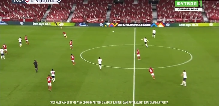 Но это не значит, что от основной тактики Англия полностью отошла – Трент по-прежнему принимал дальние переводы. Этим занимался даже Стерлинг. И в основном Англия просто ждала, когда откроется Трент или Кейн.