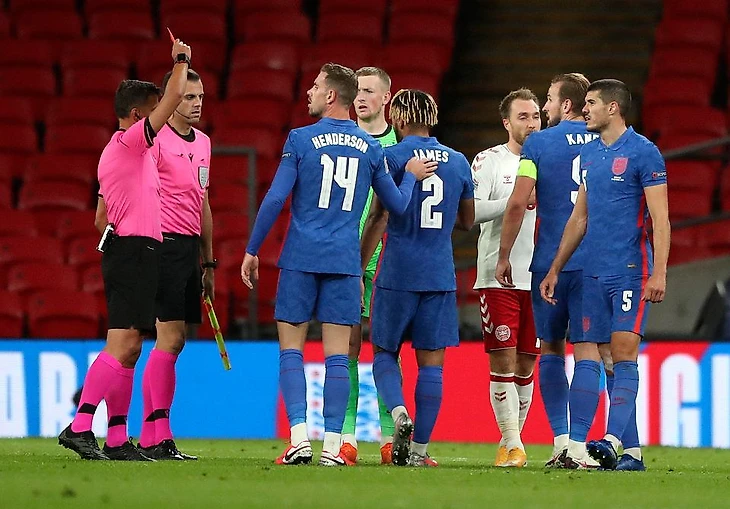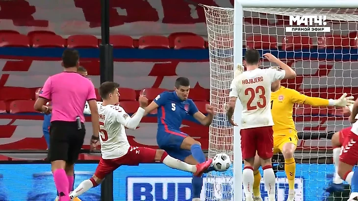 Пока Англия перестраивалась (временно на 4-4-1) и думала, что делать, Кьер увидел забегание даже не Дольберга, а Дилэйни. Коуди прервал полет мяча, зажглась над полем «свечка». Дальше произошла полнейшая клоунада в защите.