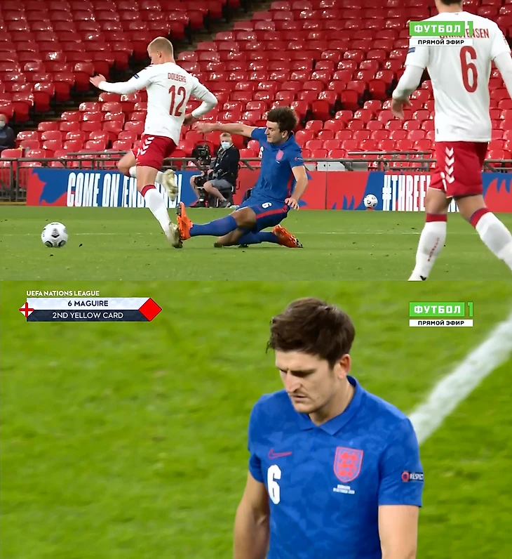 И его финальное действие. Увы, финальное, потому что он получил травму, и через пару минут был заменен. Но Дольберг – красавец, потому что вывел из игры соперника. Получил шипами в стопу от летящего Магуайра. Если бы Каспер убегал, то оказывался тет-а-тет с Коуди, момент перспективный. А так… Кэп «Юнайтед» накосячил сам – деревянно обработал пас, чтобы затем лететь в ногу сопернику, когда сзади (а еще справа был Филлипс) находился подстраховывающий партнер – и все это уже при наличии желтой карточки в схожем эпизоде. И лишь на 31-й минуте. Если кто-то думал, что что-то не так (а такие намеки от операторов во втором тайме, а также комментаторов на нашем сайте), то извините – вообще нет.