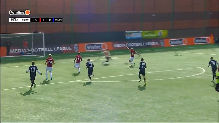 11-я минута. Пас Комиса из глубины поля, Текила выходит 1 на 1 с вратарем и забивает. Судья посмотрел ВАР, чтобы исключить офсайд – его не было. 2:0 в пользу «На спорте»