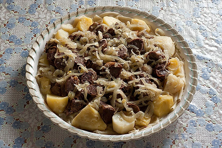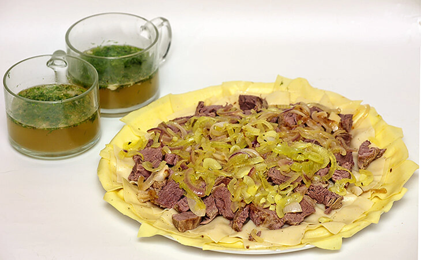 «Конина с картошкой, тестом и луком. Это очень вкусно, нереально вкусно», – восхищался клипмейкер Айсултан Сеитов в интервью Юрию Дудю*. Стоит отметить, что картофель в рецепте появился уже с эволюцией блюда.
