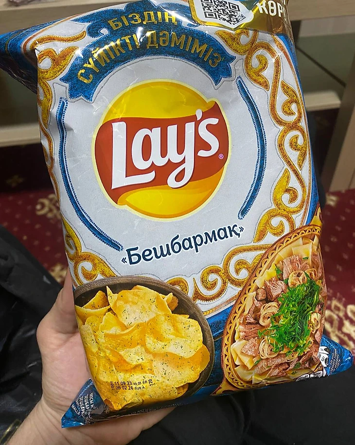 Маркетологи в Казахстане тоже пользуются народной любовью. В 2023-м по интернету гуляла новость о запуске в Казахстане чипсов со вкусом бешбармака. А еще есть лапша быстрого приготовления «Бешбармак», но ничего общего с блюдом она не имеет – обычный «дошик».
