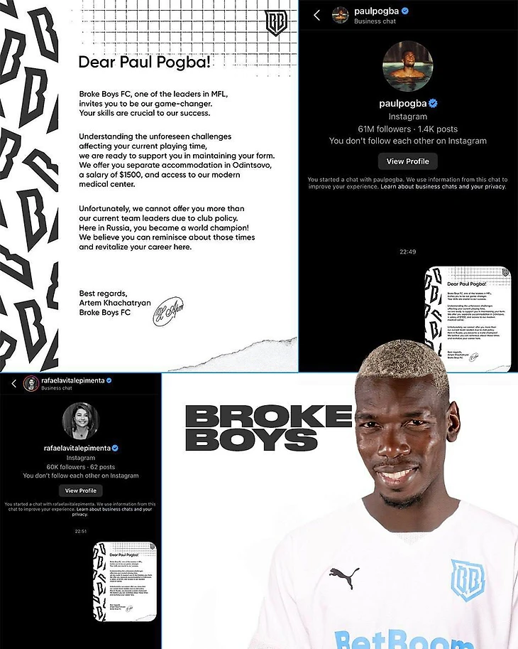 «Кому-то это может показаться смешным, но мы действительно пригласили Поля Погба, – рассказал Хачатурян на ютуб-канале «БроукБойз». – Мы сделали запрос в агентство Мино Райолы. Делами Поля заведует Рафаэла Пимента. Они пока ответили вежливым отказом. У нас идет диалог, они пребывают в стадии отчаяния и так быстро не могут принять факт, что одному из лучших футболистов мира запретили надолго играть в футбол.
