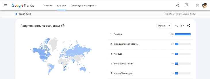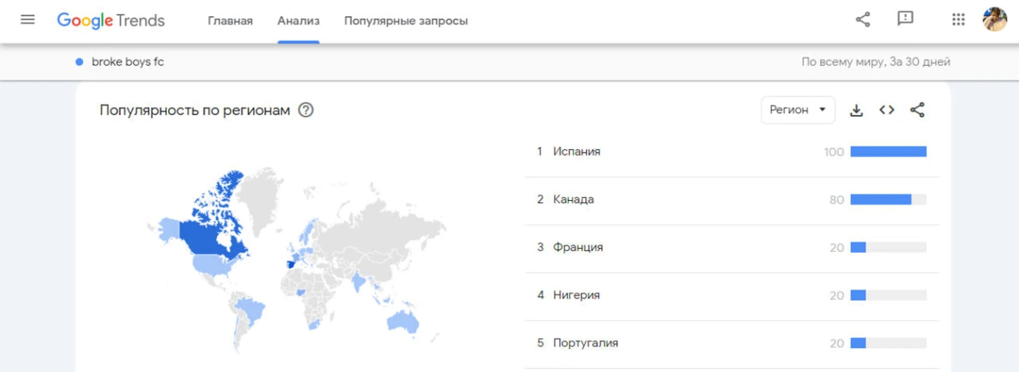 Теперь «Броуков» гуглят по всем миру, чаще всего – в Испании и Замбии