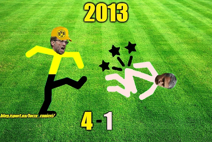 Есть у Клоппа традиция: выносить Моуриньо и денежные мешки, которые он тренирует. Причём, вскоре после поражений от Дортмунда (1-4) в 2013-м и от Ливерпуля (1-3) в 2015, Моуриньо увольнялся из реала и челси, соответственно. А увольнение из мю случилось непосредственно после очередного поражения от команды Клоппа. А ведь были ещё матчи на групповом этапе ЛЧ осенью 2012-го, когда Боруссия опередила реал Моуриньо и в таблице (14 очков против 11) и в личных встречах (2-1, 2-2); причём, в Мадриде реал отскочил на последних минутах.