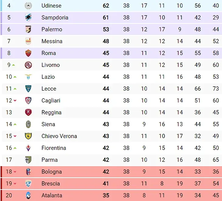 Автор KOTOFAN_17 Удинезе, Сампдория и Палермо в топе, Рим и Флоренция на грани вылета: вспоминаем сумасшедший сезон 2004-05 в Серии А!