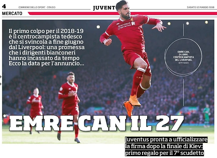 • Corriere dello Sport: 27 мая «Ювентус» объявит о трансфере полузащитника «Ливерпуля» Эмре Джана