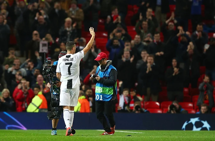 После матча "МЮ" - "Юве" на поле "Олд Траффорд" прорвался фанат - хотел сфотографироваться с Криштиану Роналду. Стюарды повязали парня, но в последний момент он успел передать свой телефон звездному португальцу. Криш настроил камеру, отогнал охрану и сделал селфи со счастливым болельщиком
