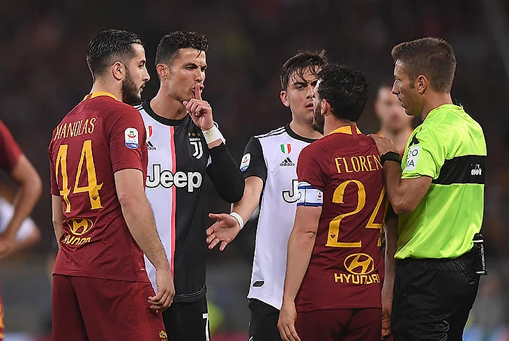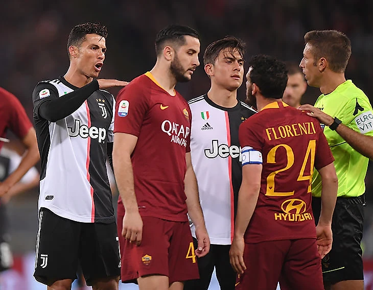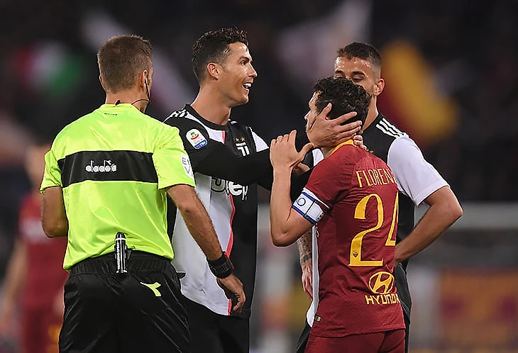 Игроков пришлось успокаивать арбитру Давиде Массе. После разговора с судьей Роналду все еще улыбался, но при этом обнял Флоренци, чтобы, по всей видимости, извиниться.