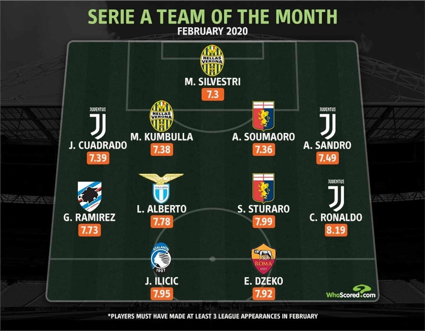 Статистический портал WhoScored представил свою сборную месяца Серии А. Из нашей команды туда попали трое — Криш (понятно: топчик по голам), Сандро и Хуан Куадрадо.
