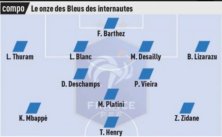 Французское издание L'Equipe собрало свой состав лучших игроков в истории Франции.