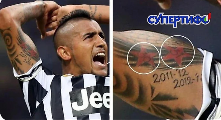 Дело в том, что на руках Артуро красуются татуировки, в честь 30 и 31 скудетто «Ювентуса», который он сделал будучи игроком клуба.