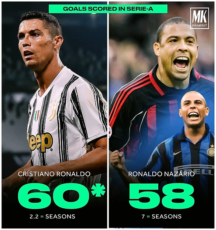 Роналду за 3 сезона забил голов больше, чем Роналдо за 7