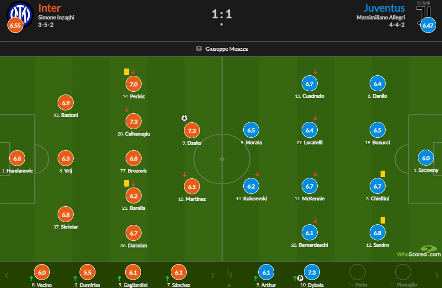 Дибала - лучший игрок "Юве" в матче с "Интером" по версии WhoScored.