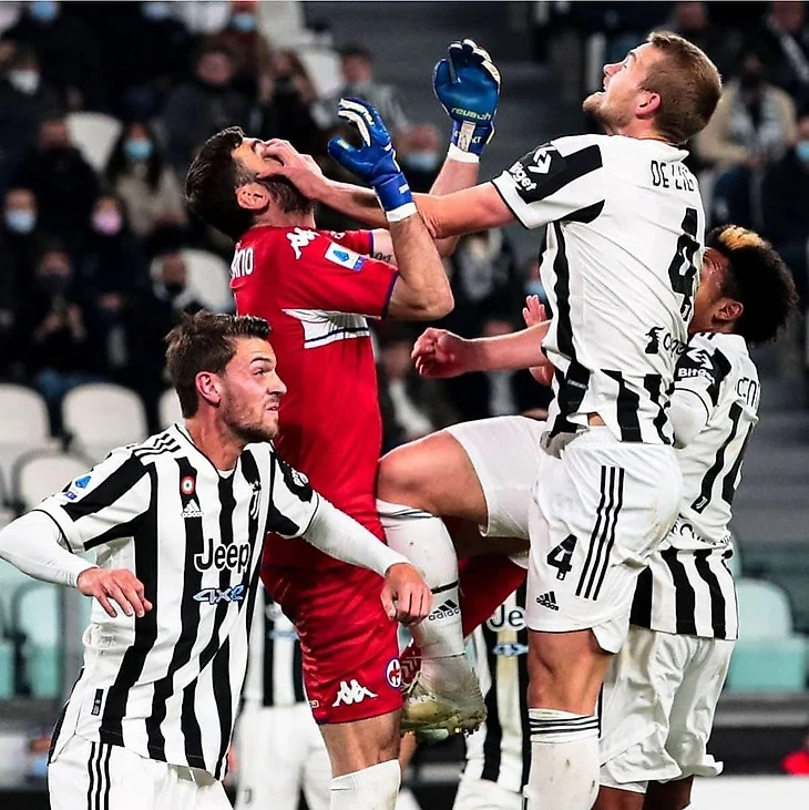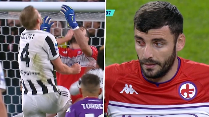 Так на 14-й минуте первого тайма при розыгрыше углового Маттейс де Лигт случайно столкнулся с кипером "Фиалок" Пьетро Терраччано и попал тому пальцами в глаз.