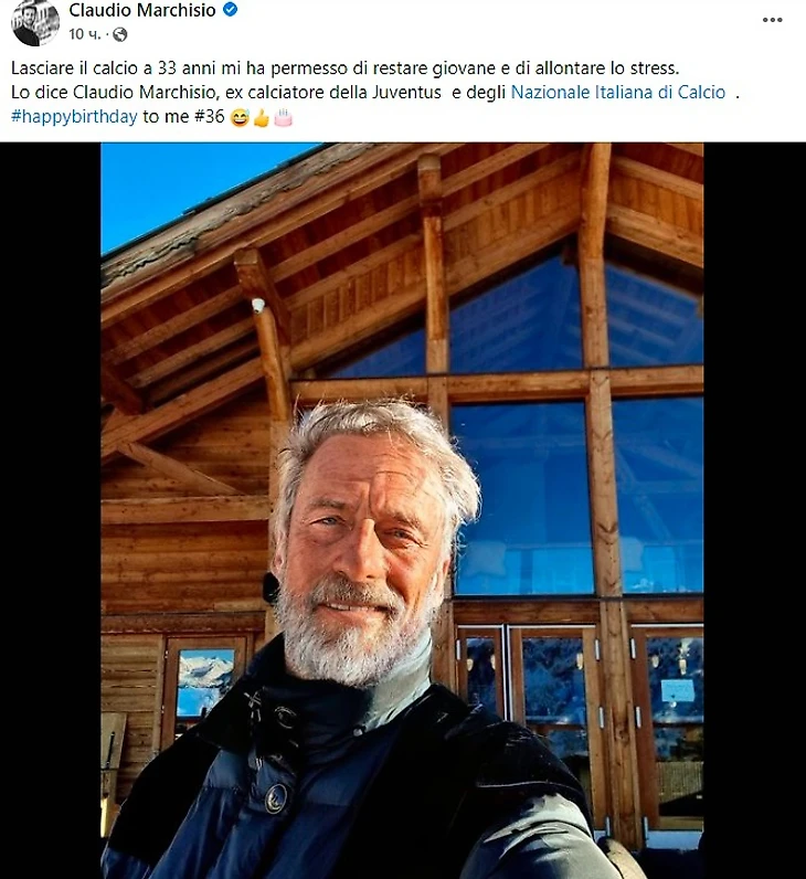 «Уход из футбола в 33 года позволил мне остаться молодым и избавиться от стресса. Так говорит Клаудио Маркизио, бывший игрок «Ювентуса» и сборной Италии по футболу. С Днем Рождения меня… 36 😅👍🎂».