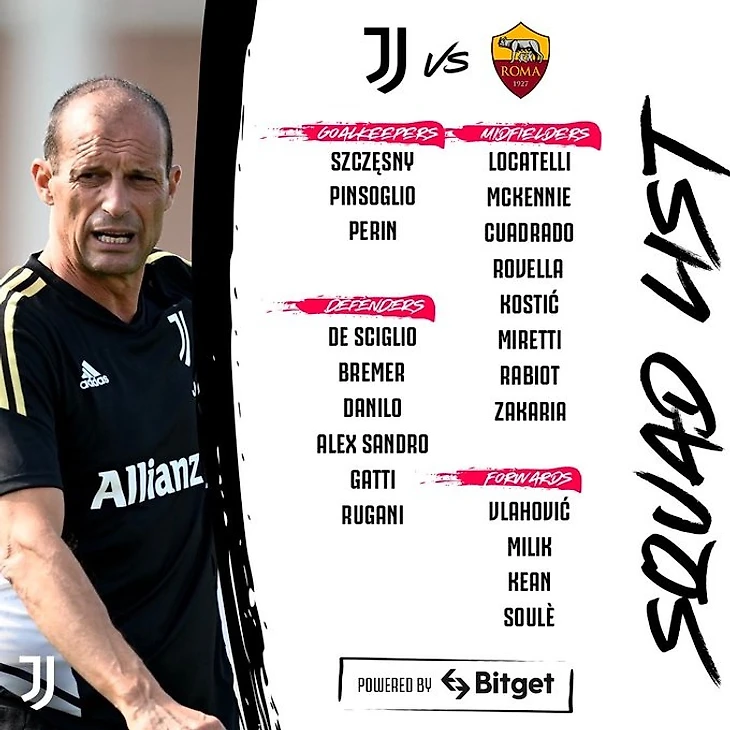 Вот заявка «Ювентуса» на матч с «Ромой»: