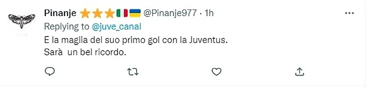 «Это футболка с матча, где он забил первый гол за «Ювентус». Потом она станет отличным воспоминанием».