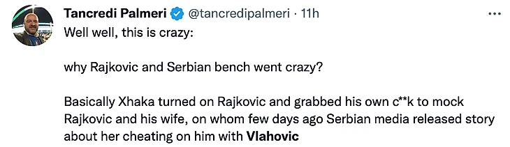 Журналист Gazzetta dello Sport предположил свою версию того, что послужило стычке между игроками сборных Сербии и Швейцарии.
