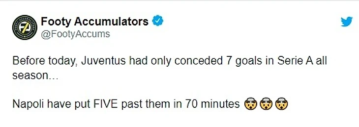 «До сегодняшнего дня «Ювентус» пропустил только 7 голов в Серии А за сезон…«Наполи» забил им 5 за 70 минут».