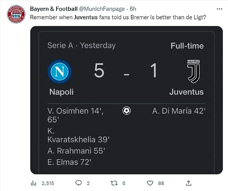 «Помните, когда фанаты «Ювентуса» говорили нам, что Бремер лучше, чем Де Лигт?».