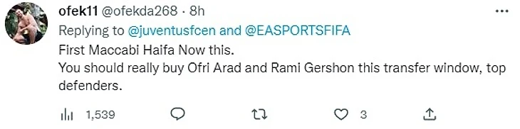 «Сначала «Маккаби Хайфа», а теперь вот это. Нужно купить Офри Арада и Рами Гершона в это трансферное окно – они топовые защитники».