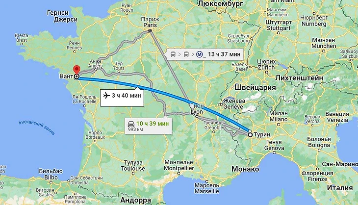 Такое количество гостевых фанатов, а по разным данным их будет не менее двух тысяч, неудивительно. От французского Нанта до итальянского Турина всего-навсего около тысячи километров или три часа лета на самолете. Правда, прямых рейсов на север Италии нет, но варианты найти не так сложно.