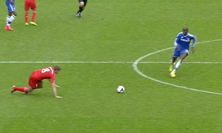 Мяч дошел до Мохамеда, который сразу же отправил его на ход Людовику Бласу. Бремер запутался в ногах, потерял координацию и исполнил «финт Джеррарда».