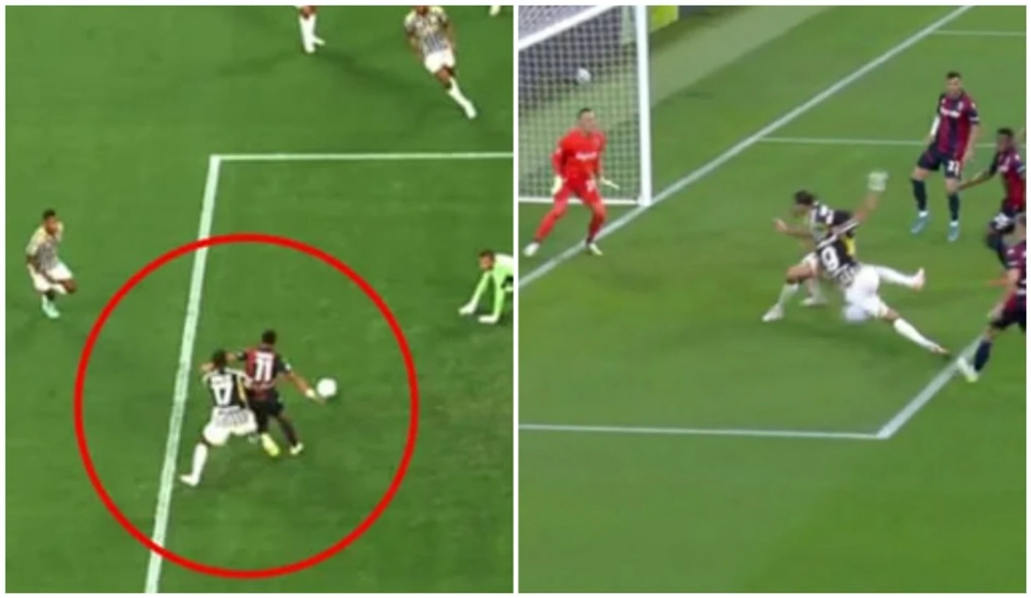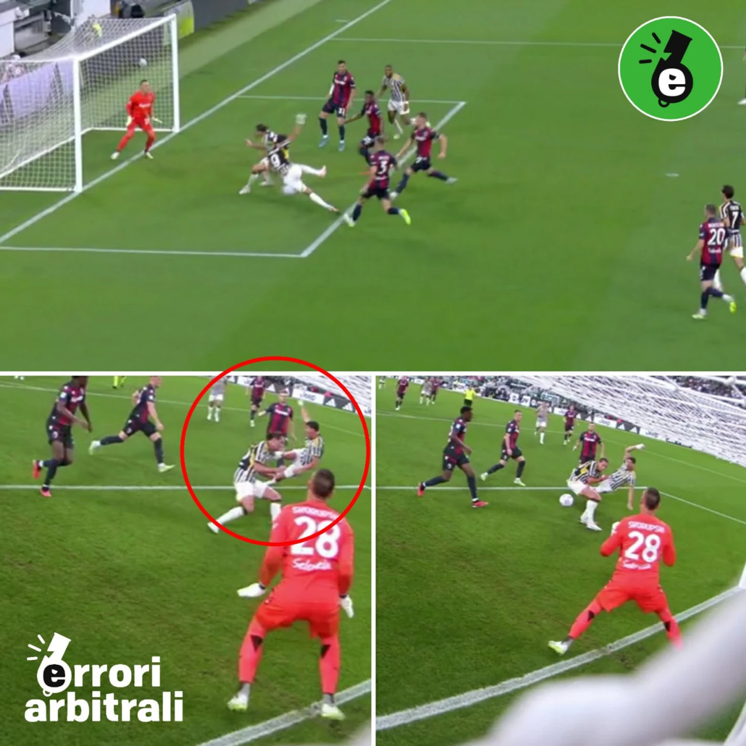 На 8-й минуте в штрафной площади «Болоньи» полузащитник Николо Моро небрежно сыграл в воздухе и уронил на газон Федерико Кьезу. Также хорват коснулся мяча рукой. Если последнее не наказывается, то первое можно трактовать как «неосторожное вмешательство».