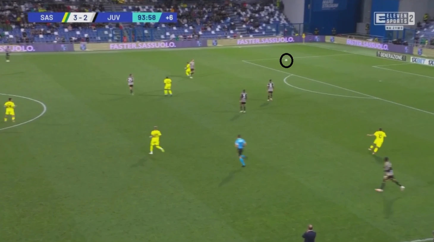 Обычно в такие моменты, когда время поджимает, мяч выносится вперед, но поляк решил иначе. Он увидел, что на границе штрафной стоят два защитника «Юве» и отправил мяч туда.