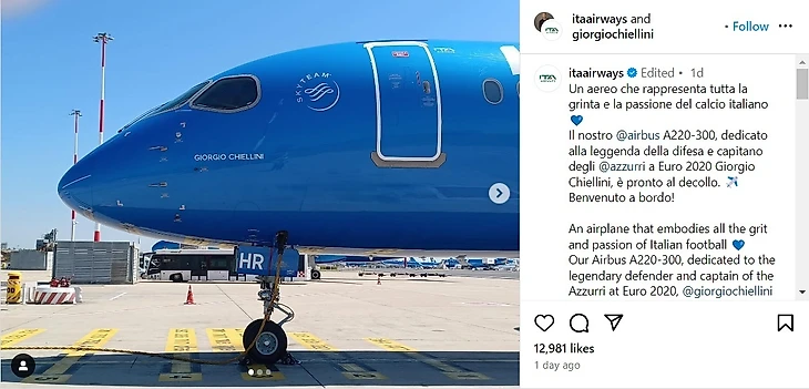 ITA Airways назвали самолет в честь Джорджо Кьеллини ✈