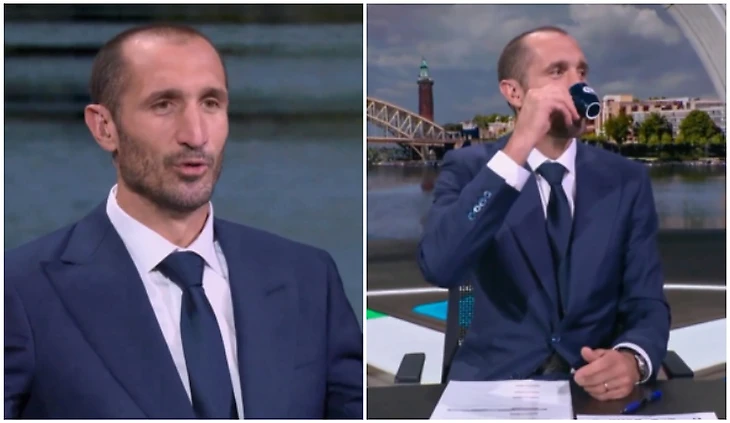 Студия обсуждала один из главных матчей тура − игру между Испанией и Италией. В какой-то момент Кьеллини сказал, что очень любит всех в студии, но настало время для четвертой за день чашечки эспрессо.