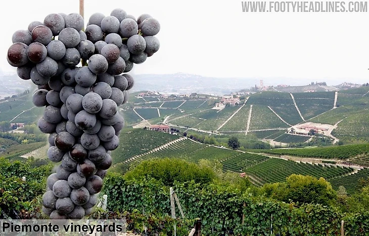 Дизайном футболка обязана виноградникам Пьемонта, подарившим дизайнерам идею для нового цвета формы.