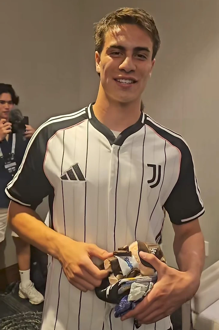 Перед игрой плей-офф на клубном чемпионате мира между «Ювентусом» и «Мадридом» Килиан Мбаппе подошел к французу Кефрену Тюраму и заметил у него лабубу. Реакция форварда попала на видео.